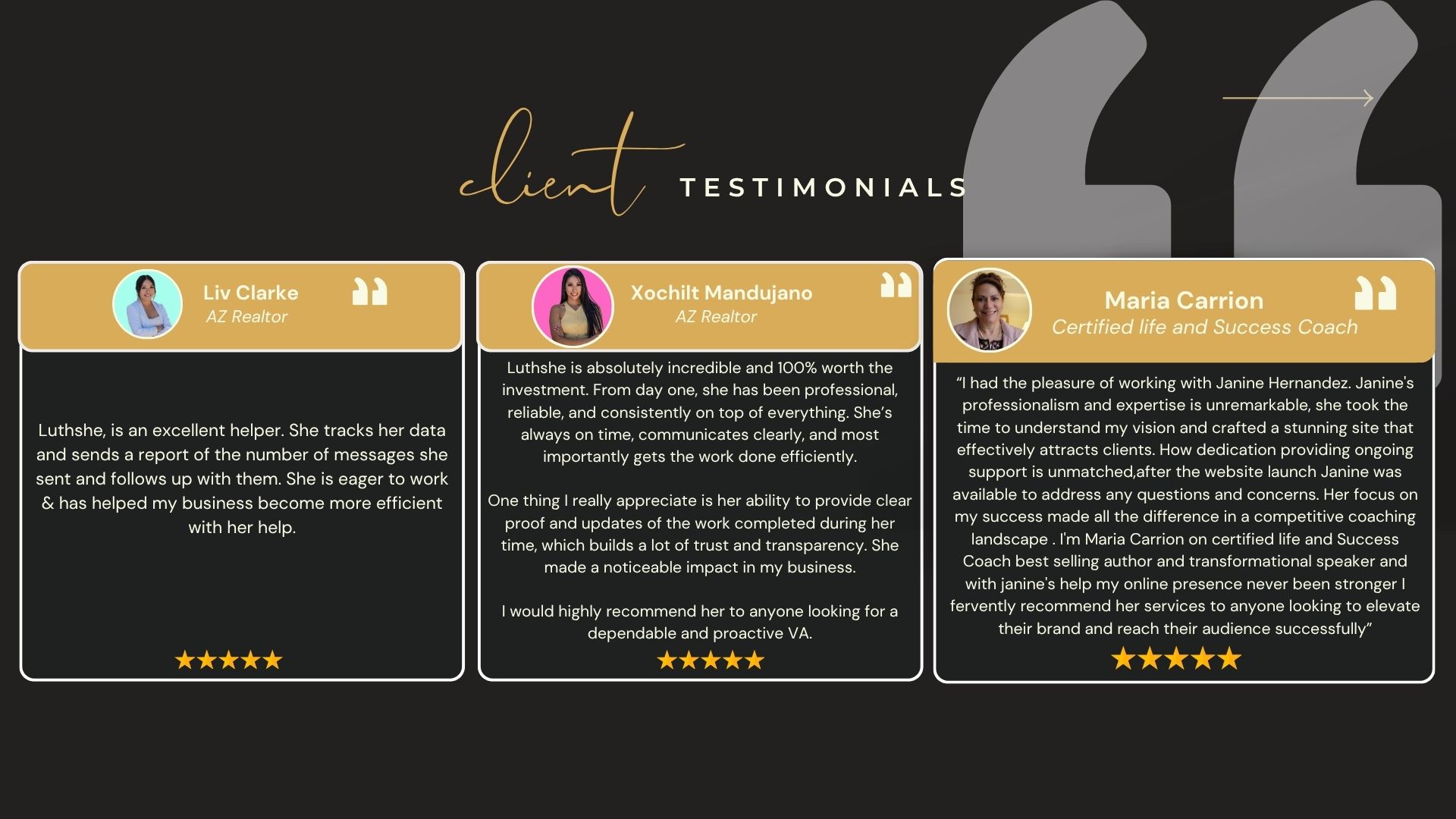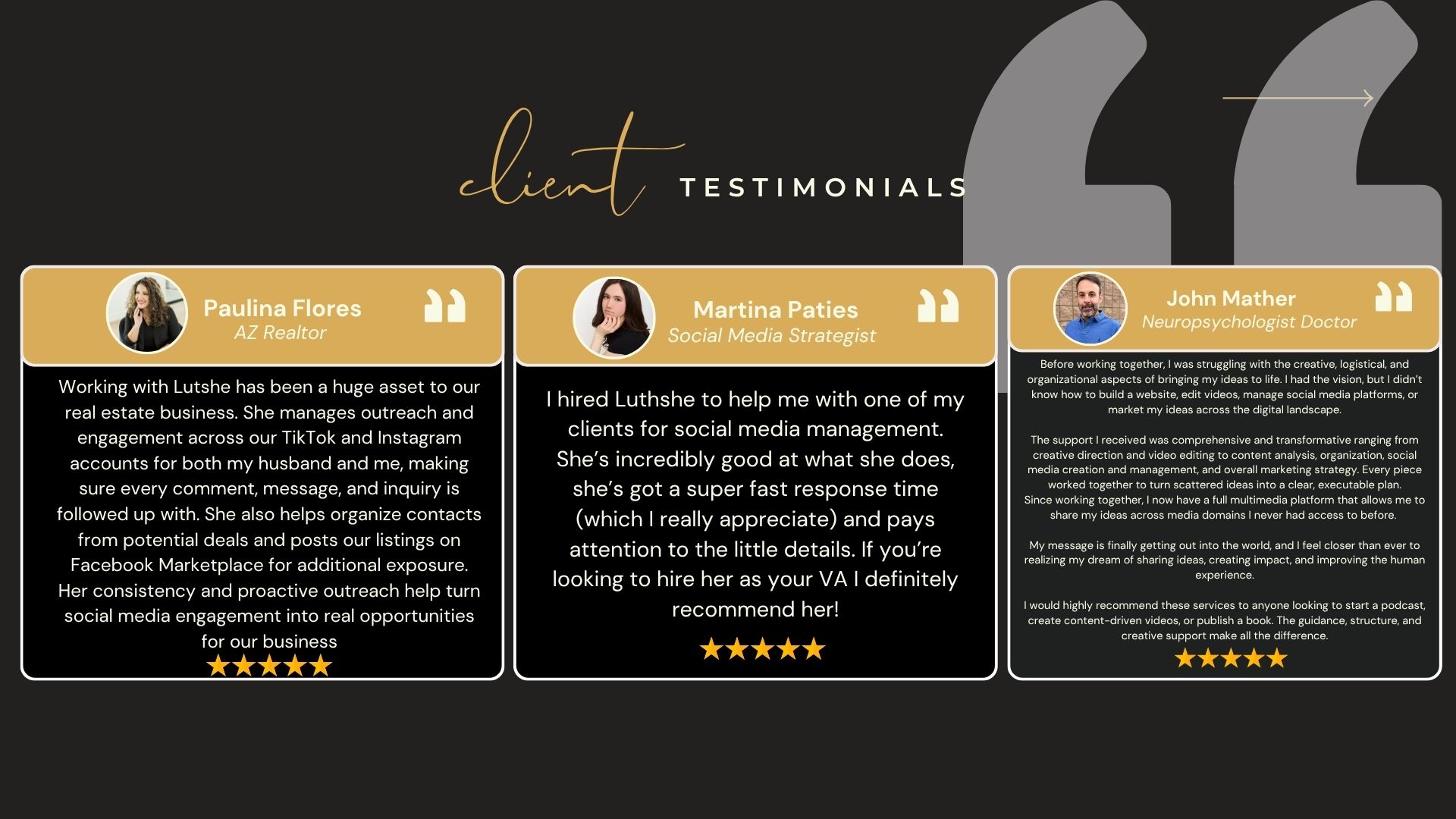 They knocked my branding literally out of the park by helping create my logo, brand my website, designing several marketing materials and helping me with social media. I have a clear brand message now and